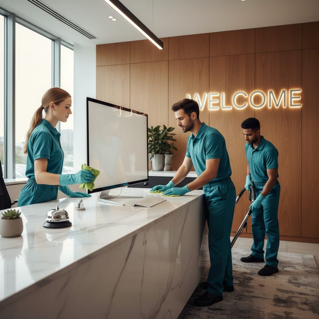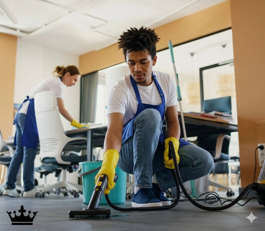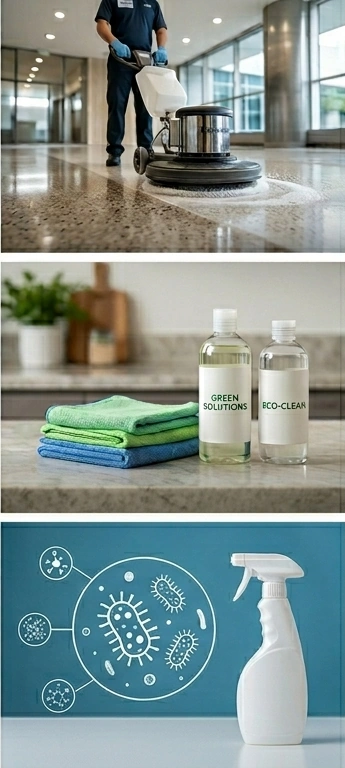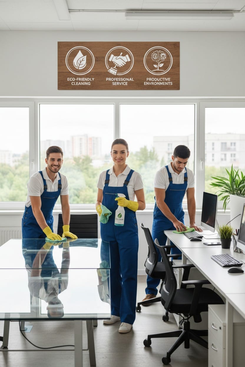 We provide reliable, eco-friendly cleaning solutions for businesses of all sizes. Our expert team handles office cleaning, floor care, exterior maintenance, and restroom disinfection. We focus on creating clean, healthy workspaces that boost productivity and well-being.